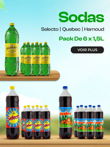 Soda Selecto 6 x 1,5L : pack de six bouteilles de soda rafraîchissantes de 1,5L.